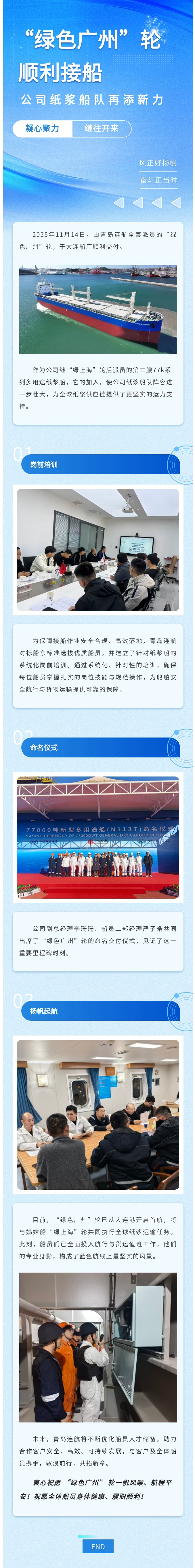 “綠色廣州”輪順利接船,公司紙漿船隊(duì)再添新力